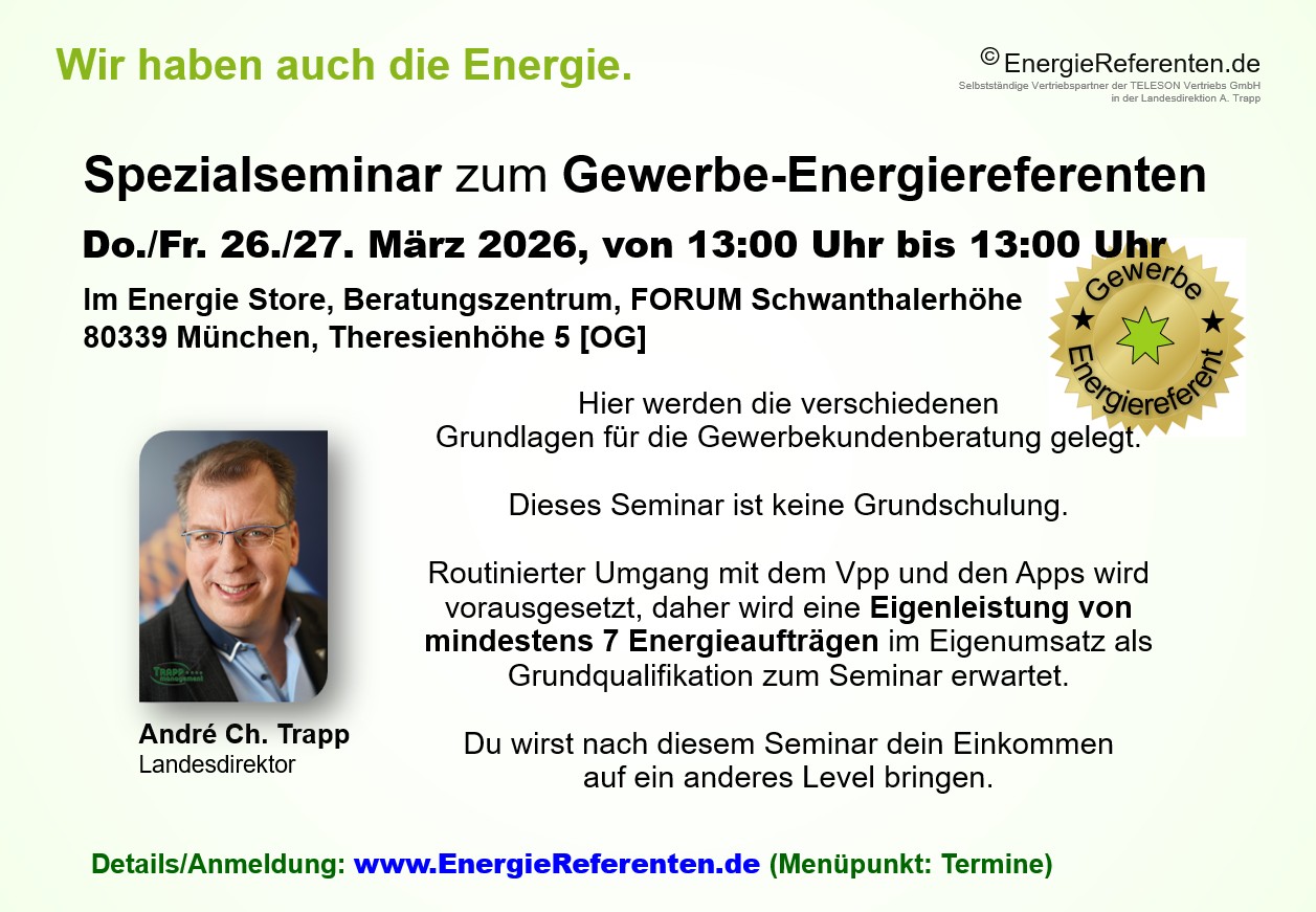 Ausbildung von Energiereferen als Gewerbespezialisten in MÜNCHEN
